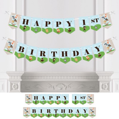 Big Dot of Happiness 1st Birthday Woodland Creatures - First Birthday Party Bunting Banner - Party Decorations - Happy 1st Birthday