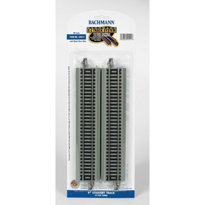 Bachmann Trains - Snap-Fit E-Z Track Straight Track (4/card) - Nickel Silver Rail With Gray Roadbed - HO Scale