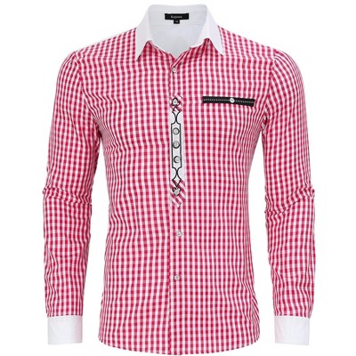 Men's Shirts Casual Slim Fit Plaid Button Down Dress Shirt,XL,Red