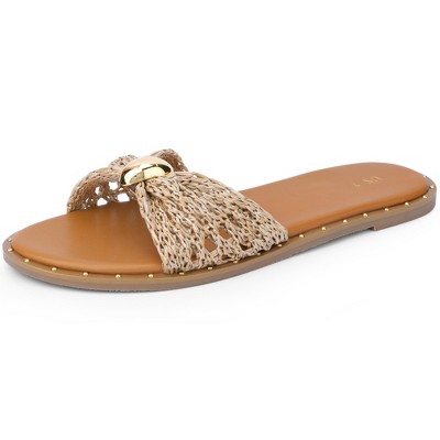 BLISSFUL STEP Flats Sandal Raffia Knot Open Toe Slides Sandals for Women