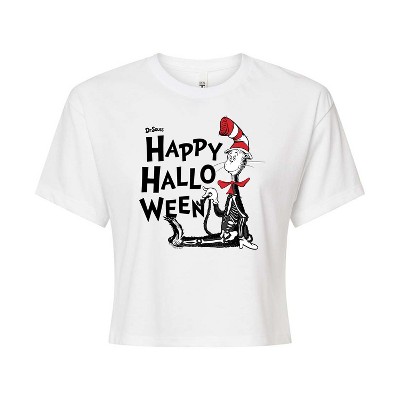 Women's - Dr. Seuss - Happy Halloween Skeleton Cat Cropped Graphic T-Shirt