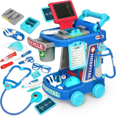 Etokfoks Doctor Kit for Toddlers Ages 2 to 5 Kids Medical Playset 29 Piece Cart Costume Stethoscope Educational Role Play Toy Gift