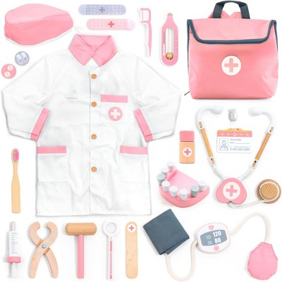 Etokfoks 20 Piece Wooden Doctor and Dentist Kit for Kids with Stethoscope Tooth Model Coat Pretend Play Medical Set for Girls Ages 3 4 5 6