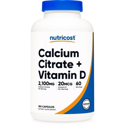 Nutricost Calcium Citrate + Vitamin D Supplement (2,100mg) 180 Capsules - 20mcg of Vitamin D, 60 Servings