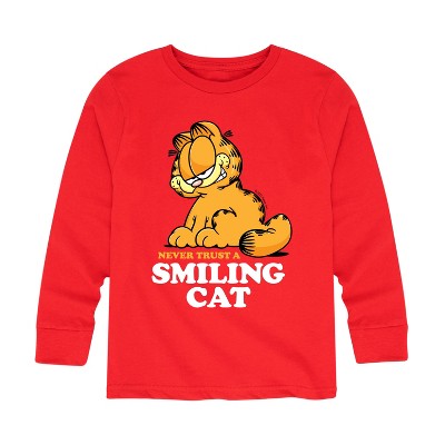 Boys' - Garfield - Never Trust Smiling Cat Long Sleeve Graphic T-Shirt