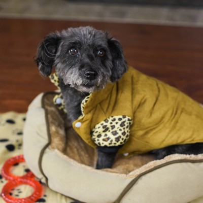 Speedy Pet Mocha Brown and Leopard Design Paw Print Fashion Fleece Lined Reversible Dog Jacket - Large