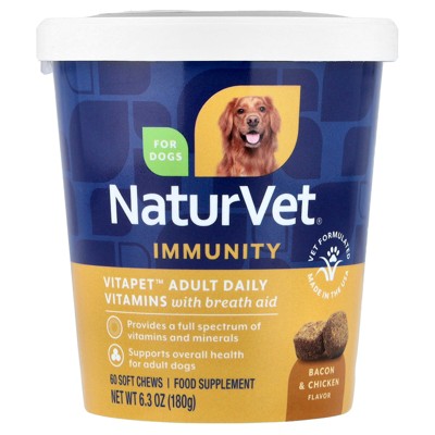 NaturVet VitaPet Adult, Daily Vitamins + Breath Aid, For Dogs, 60 Soft Chews, 6.3 oz (180 g)