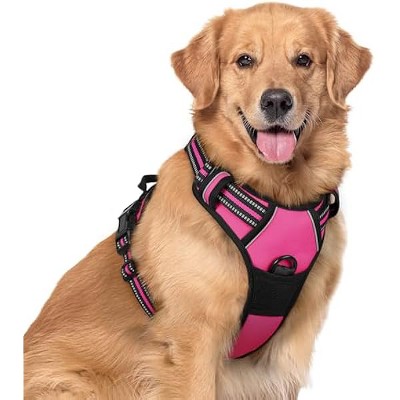 rabbitgoo Dog Harness No Pull with 2 Leash Clips, Oxford No Choke Pet Vest with Easy Control Handle for Large Dogs, Blue & Hot Pink, M