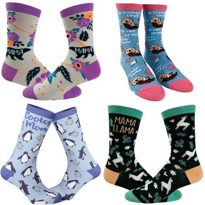 Crazy Dog Womens Animal Mom Bundle 4 Pack Socks With Cute Creature Designs for Cool Moms