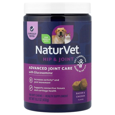 NaturVet Advanced Joint Care With Glucosamine, For Dogs & Cats, Bacon & Chicken, 180 Soft Chews, 15.2 oz (432 g)