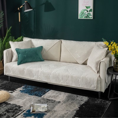 Bekrvio Pet-Proof Velvet Sofa Cover, Non-Slip Washable Sectional Couch Protector for Dogs & Cats, Leaf Pattern Fuzzy Furniture Slipcover