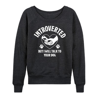 Women's - Instant Message - Introverted Will Talk To Dog Lightweight French Terry Wide Neck Long Sleeve Graphic Shirt