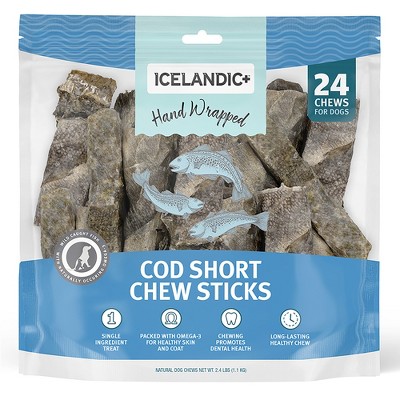 Icelandic+ Cod Skin 5" Short Dog Chew Sticks Treat, 24 Pack Bag