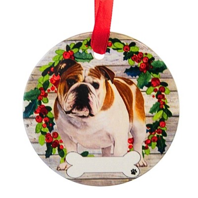 E & S Imports 3.5 Inch Ceramic Bulldog Ornament Christmas Tree Ornament , Christmas Decor Dog Puppy Ribbon Cherish Pet (1PC)