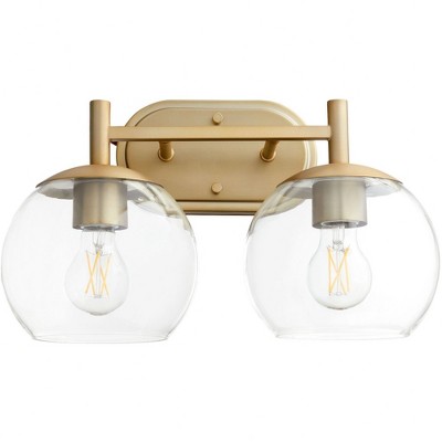 Quorum Lighting Espy 2-Light Vanity, Noir/Aged Brass, Glass, 15.5W, 9.25H, 7D