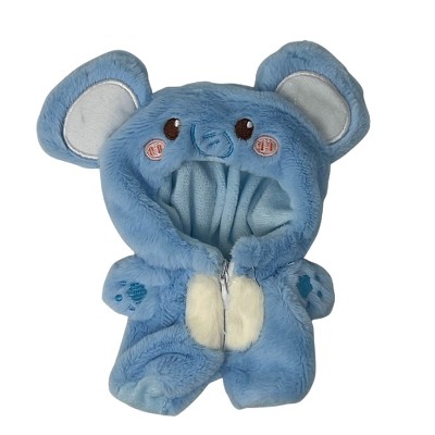 Soft Blue Plush Elephant Costume for 17.5cm Labubu Dolls with Hood and Ears
