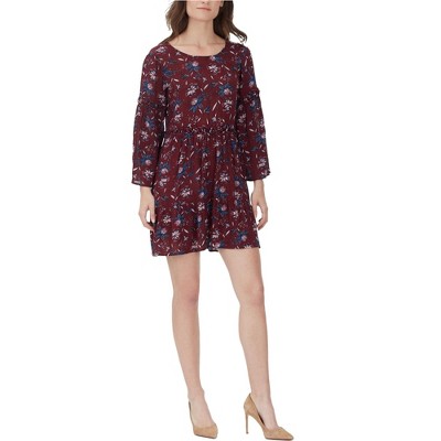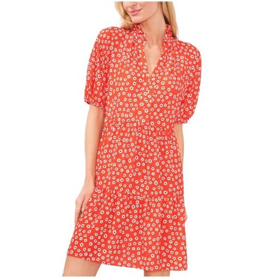 CeCe Womens Floral Rint Baby Doll Dress, mediumred, Small