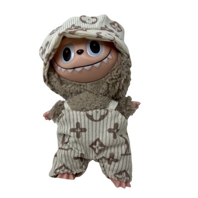 Tan Designer Overalls with Headband for 17.5 Labubu Dolls