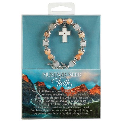 Dicksons 35-8088 Mustard Seen Peach White Cross One Size Genuine Beaded Stone Women's Charm Stretch Bracelet
