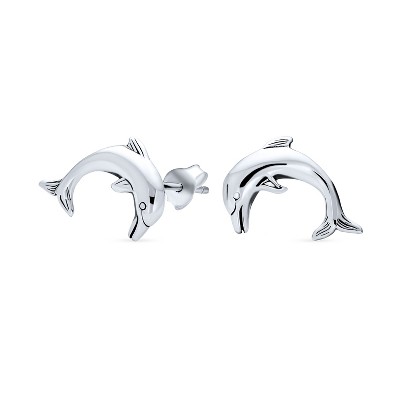 Bling Jewelry Hawaiian Nautical Sea Lover Vacation Honeymoon Mermaid Fin Ocean Marine Life Small Dolphins Stud Earrings Sterling Silver
