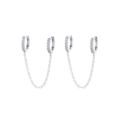 14k Gold and Sterling Silver Double Huggie Chain Earrings with Crystals