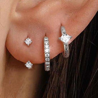 925 Sterling Silver Earrings for Multiple Piercing Hypoallergenic CZ Cartilage Earrings Stacks