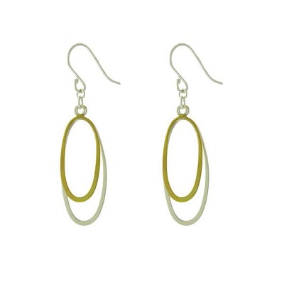 Bella Silver Sterling Silver Dangling Two-Tone Double Oval Earrings - Silver