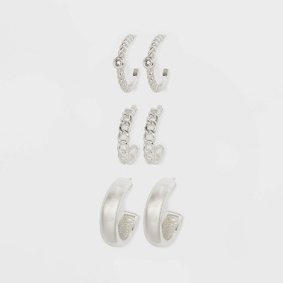 Braided and Twist Textured Hoop Earring Set 3pc - Universal Thread™ Silver: Steel, Nickel-Free, Zinc Alloy
