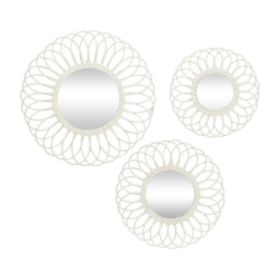 Olivia & May Wood Starburst Wall Mirror Set of 3 White: Traditional Style, No Assembly, Includes Mounting Hardware