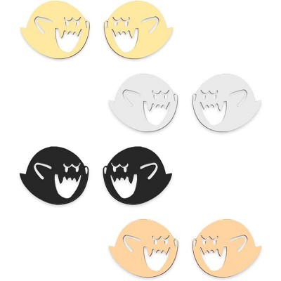 Minimalist Halloween Stud Collection - 4 Pairs of Hypoallergenic Stainless Steel Earrings for Subtle Spooky Style