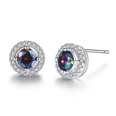 Hollywood Sensation Crystal Halo Topaz Stud Earrings .25 Inches White