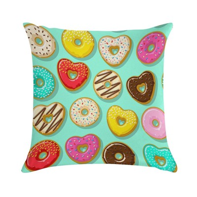 Sweet Donuts Heart Pillow Covers 18x18 Decorative Throw Pillows Soft Square Cushion Covers for Couch Sofa Bedroom
