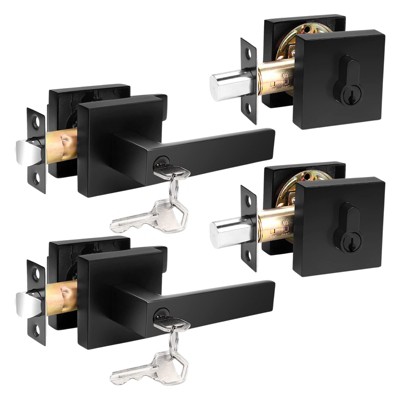 Itopfox Square Entry Levers and Deadbolts Combo Pack, Flat Black Keyed Alike Heavy Duty Keyed Entry Handles Locksets Reversible for Right & Left Side