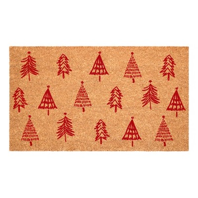 HomeRoots 24" X 36" Brown And Red Christmas Trees Outdoor Coir Door Mat