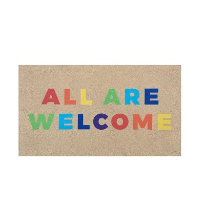 Evergreen 16 x 28 Inches All Are Welcome Welcome Door Mat | Non-Slip Rubber Backing | Dirt catching Natural Coir | Indoor and Outdoor Home Decor