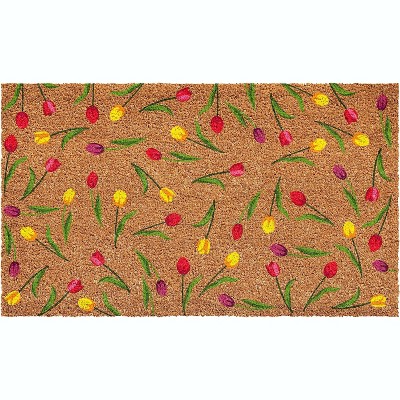 HomeRoots 17" X 29" Brown White And Green Floral Welcome Outdoor Coir Door Mat