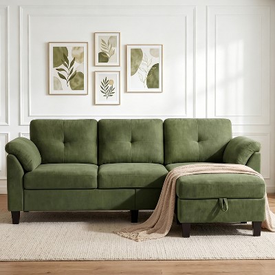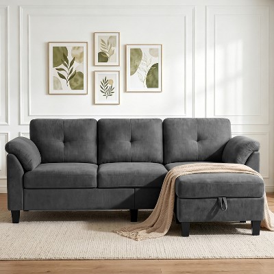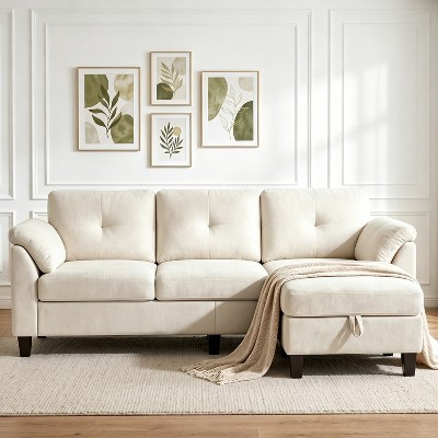 Dyonery 79" L-Shaped Convertible Sofa with Storage Ottoman & Removable Cushion Covers – 3-Seat Couch for Living Room, Small Space