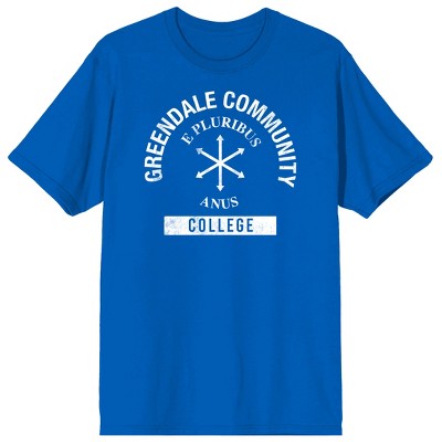 Community Greendale Community College Adult Blue Crew Neck Short Sleeve T-shirt