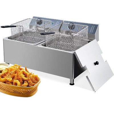 23.2QT Electric Deep Fryer with Basket and Lid, 11+11 L Stainless Steel Countertop Oil Fryer with Temperature Control, Single Tank Deep Fry, 1700w