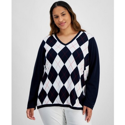 Tommy Hilfiger Womens Argyle Pullover Sweater