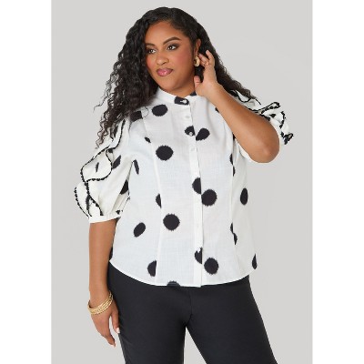 Miss Circle Omari Black Chiffon Polka Dot Ruffled Neckline Mini Dress