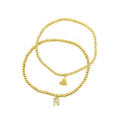 Adornia 14k Gold Plated Stretch Bracelet Set With Mini Crystal Initial