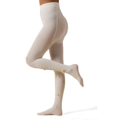 Memoi Women's Ribbed Velvety-Bow-Trimmed Cotton Blend Tights