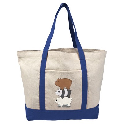 We Bare Bears Bear Stack Canvas Tote Bag With External Pocket, Reusable Shoulder Bag for Shopping, School, Beach, Royal
