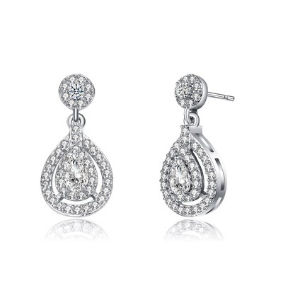 Sophisticated Rhodium-Plated Hanging Earrings with Dazzling Cubic Zirconia for a Glamorous and Refined Touch