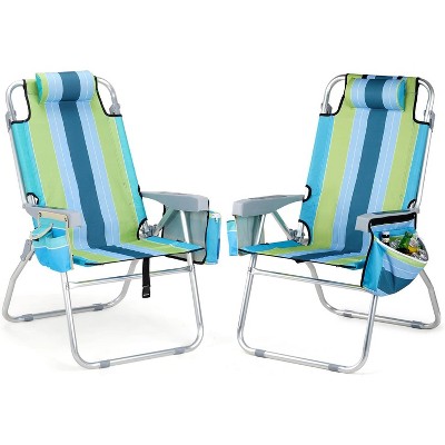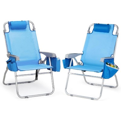 VINGLI 2 Pack Tall Beach Chair, 16" with 5-Position, Cooler Bag, Cup Holders, Towel Bar, Lightweight Folding Beach Camping Chairs for Adults