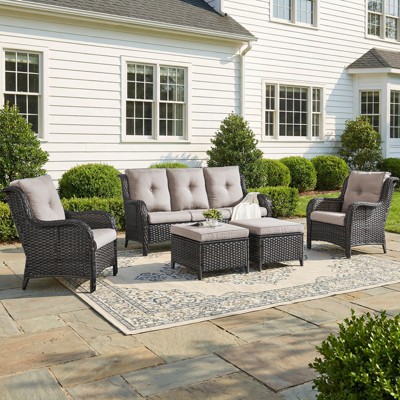 Gymojoy 5-Pieces Patio Furniture Set, Outdoor Wicker Sofa Couch with Chairs Ottomans Comfy Cushions, All Weather High Back Modern Conversation Set