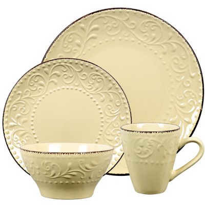 Lorren Home Trends 16 Piece Stoneware Scroll Dinnerware Set-Yellow