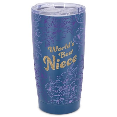 Elanze Designs 20 oz Stainless Steel On the Go Insulated Travel Tumbler With Push Top Lid, Vibrant Abstract Brushed Floral Sky Blue