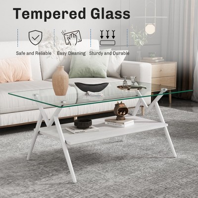 - white tempered glass top table